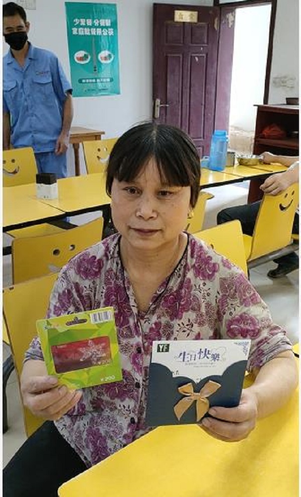 2020年8月南京益夫正式實施員工生日福利制度,到2021年8月剛好執(zhí)行滿一年。公司的每一名老員工在生日的當(dāng)月都獲得了賀卡和一張價值兩百元的蘇果購物卡,禮物雖不貴重,但每個人拿到禮物那一刻,臉上都掛滿笑容,這代表著公司對每一位員工的珍視與關(guān)懷。
