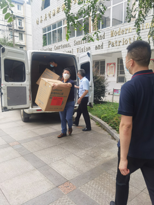 8月12號一早,劉小全董事長與姜堰-南京商會愛心企業(yè)家們奔赴南京市相關(guān)學(xué)校,將口罩一一捐贈到位。
